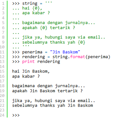 versi Python 2.6, teknik untuk memformat string cenderung lebih simpel.meskipun